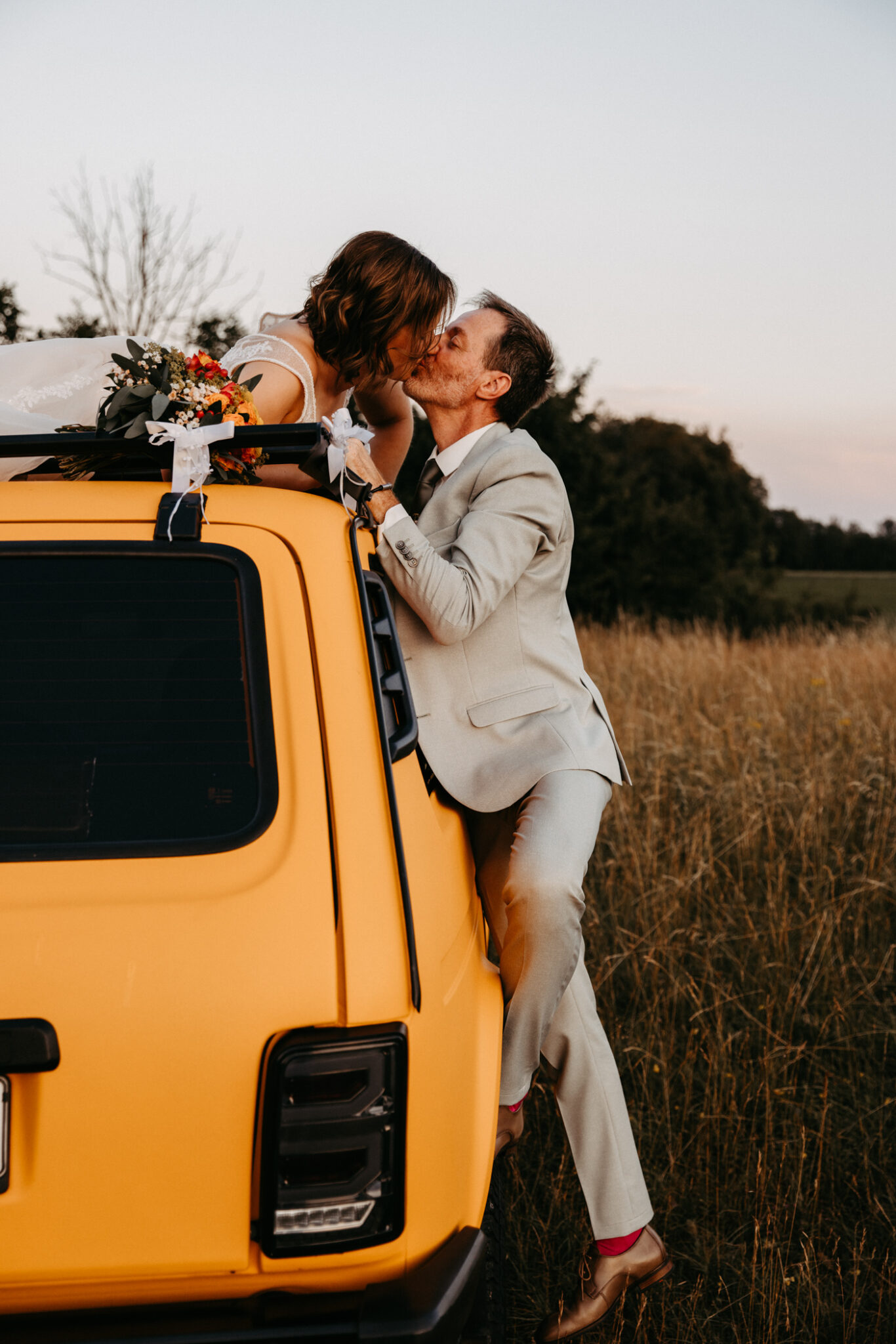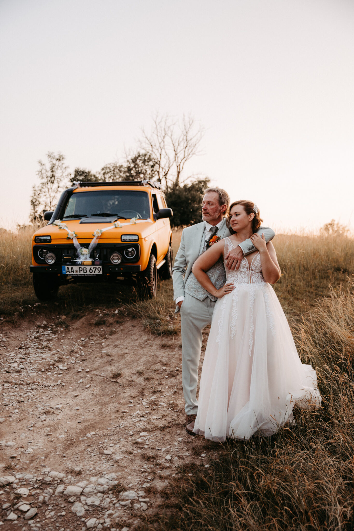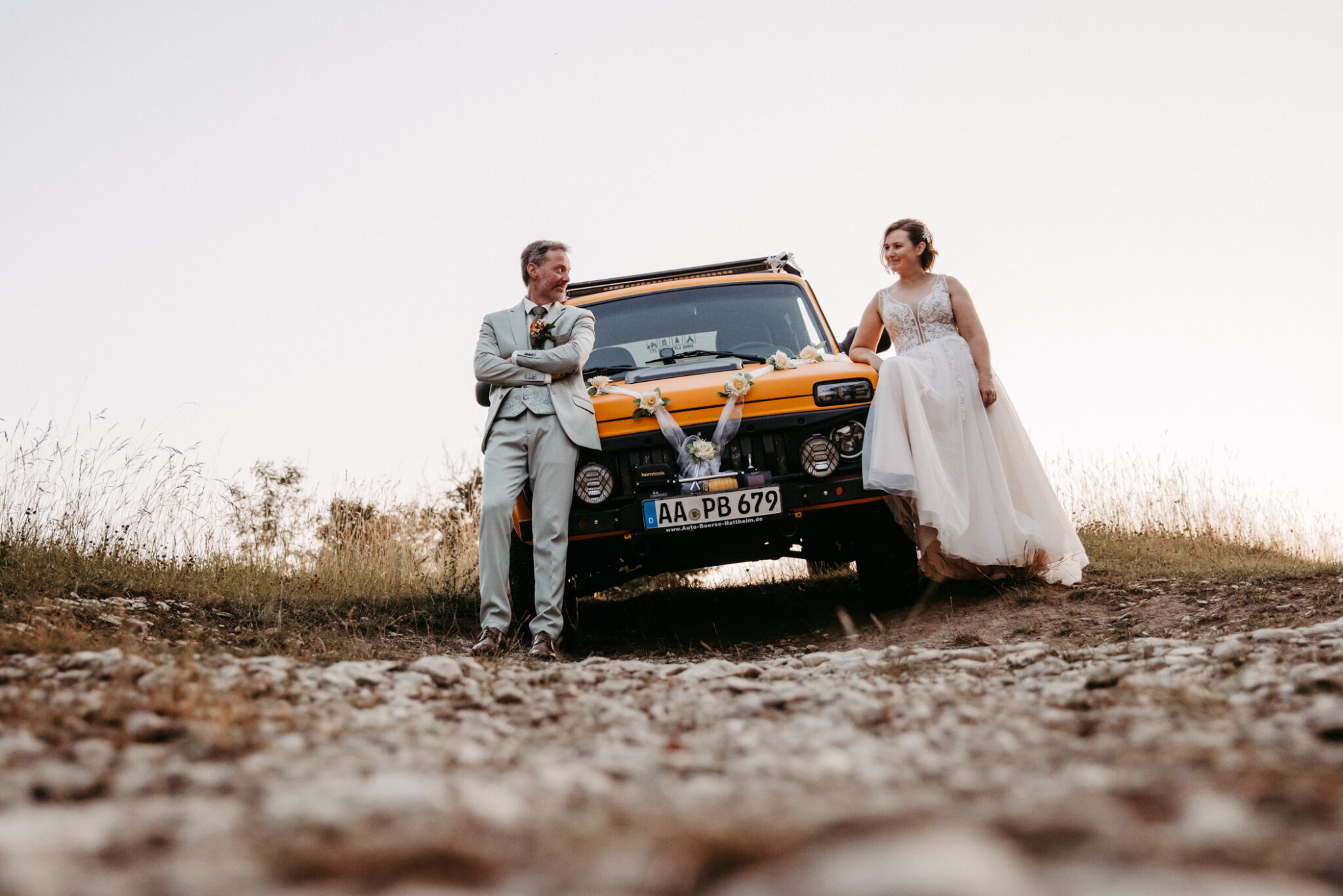 Unser After-Wedding-Shooting war einfach der Knaller: ein kanariengelber Lada, ein super entspanntes Brautpaar und jede Menge gute Laune. Wir hatten perfektes Wetter und einen traumhaften Sonnenuntergang – besser geht´s nicht.