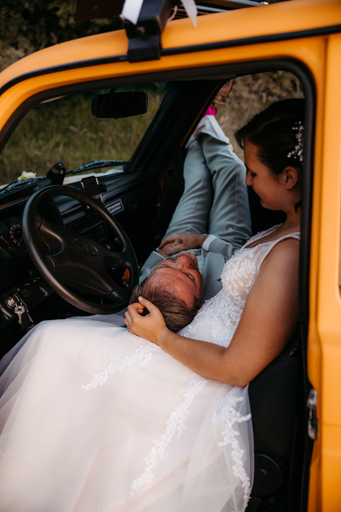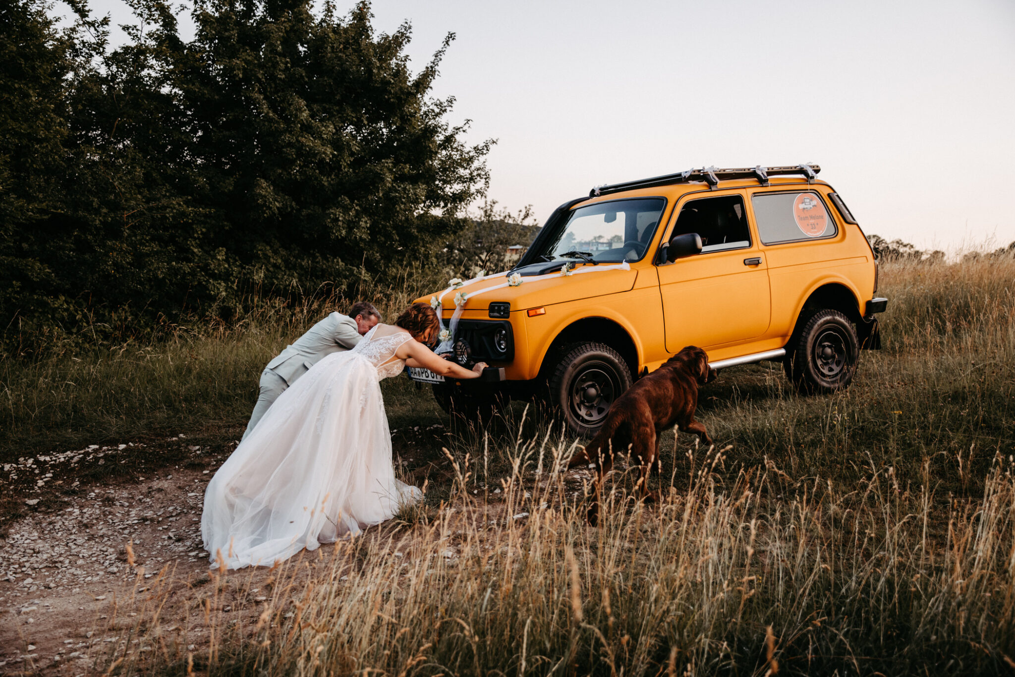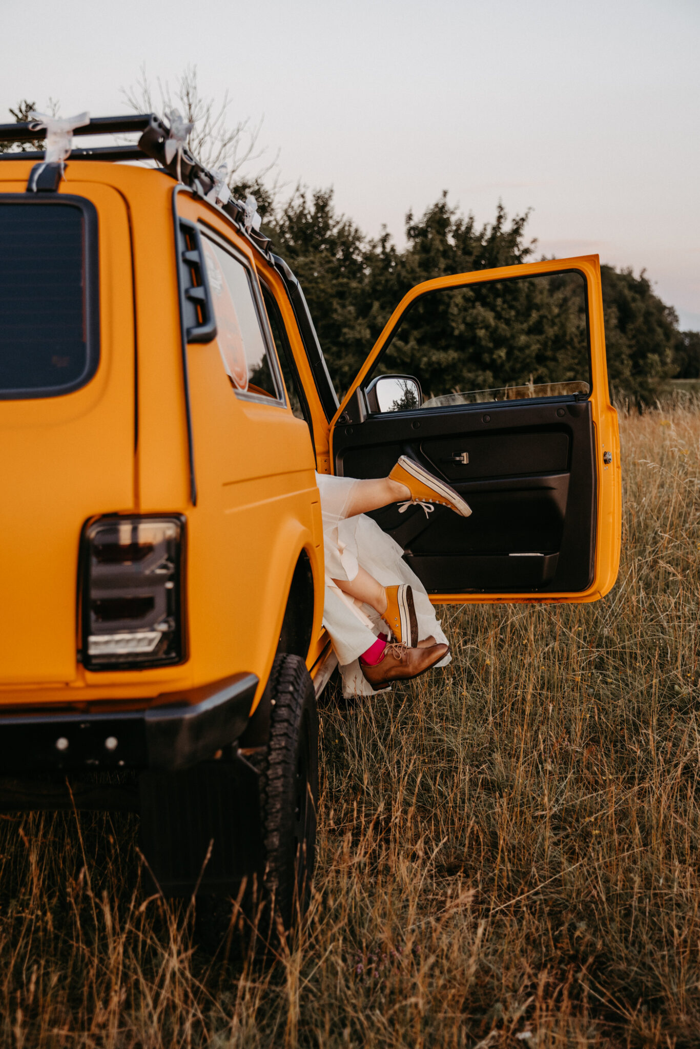 Unser After-Wedding-Shooting war einfach der Knaller: ein kanariengelber Lada, ein super entspanntes Brautpaar und jede Menge gute Laune. Wir hatten perfektes Wetter und einen traumhaften Sonnenuntergang – besser geht´s nicht.