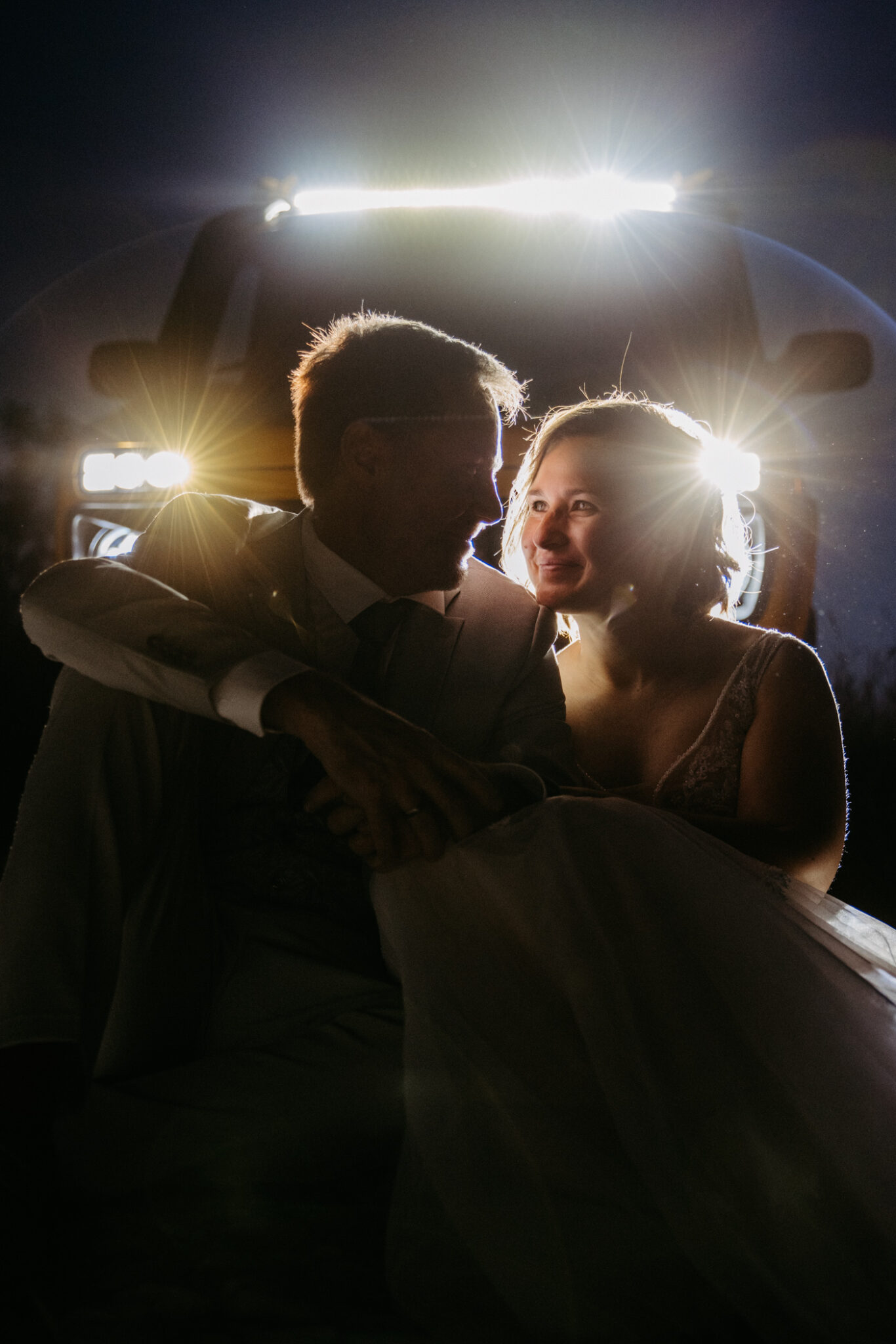 Wir haben bis in die Nacht weitergeshootet – mit Autoscheinwerfern statt Sonne. Locker, lustig und genau so wie es zu den beiden passt.