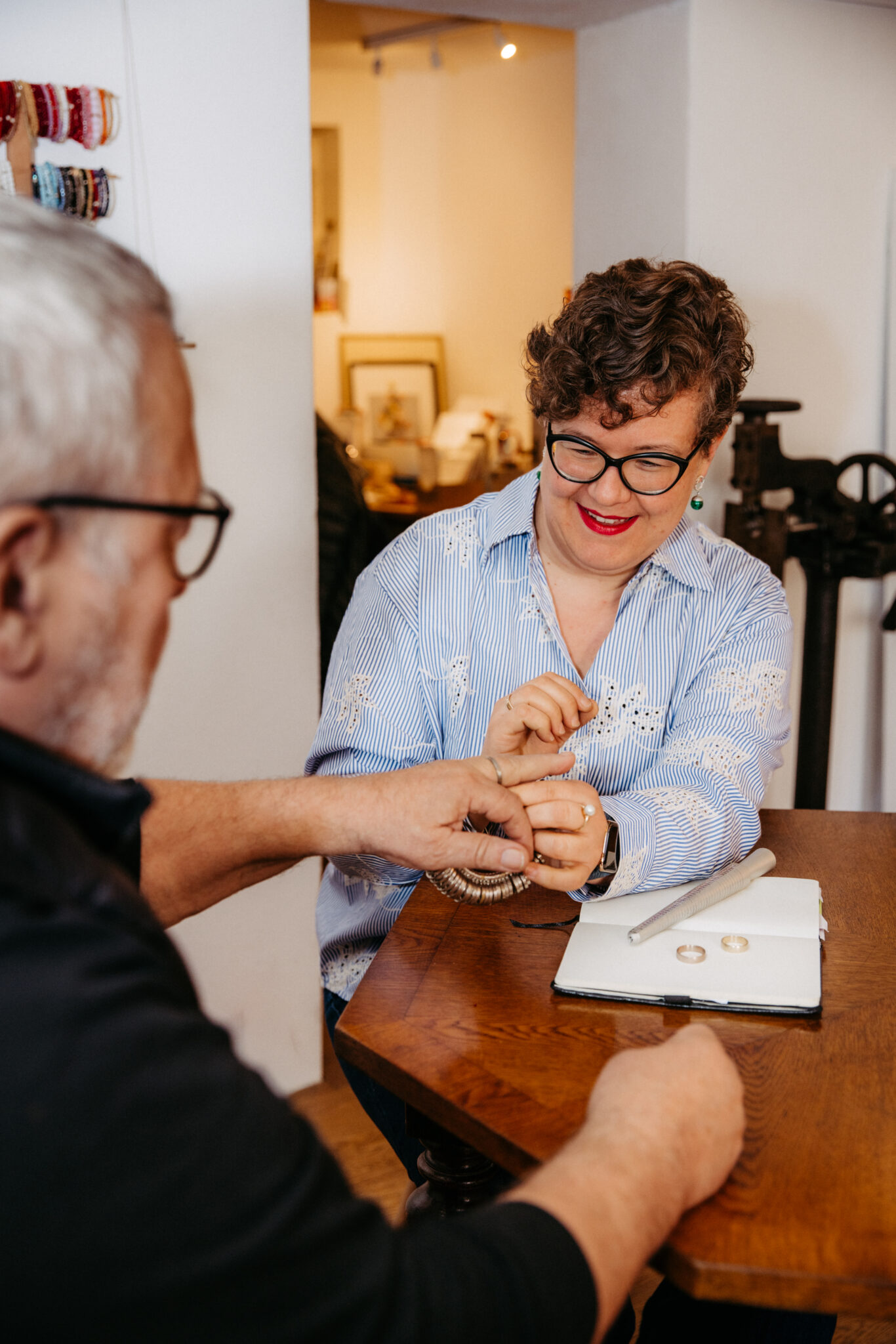 Die liebe Julie habe ich ein kleines Stück durch ihren Alltag begleitet. Im persönlichen Kundenkontakt, bei der Beratung und Planung individueller Schmuckstücke und natürlich bei dem was sie am besten kann – dem Handwerk selbst.